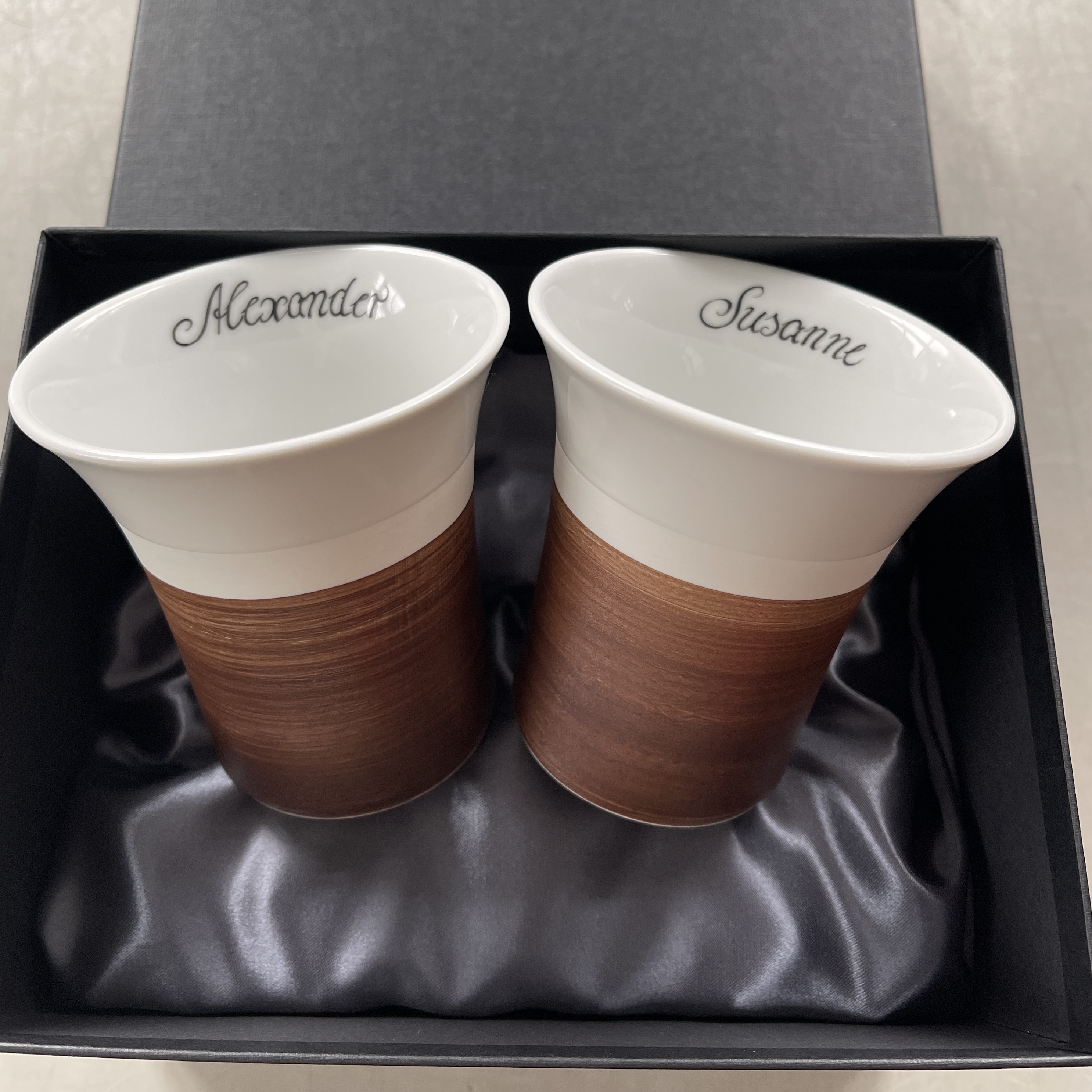 Bitte beachten Sie, dass die Personalisierung der Becher mit anschließendem Brand und Versand ca. 2 Wochen Dauer beansprucht. Die gewünschten Namen schreiben Sie bitte zum Abschluss der Bestellung, ganz unten links in das Kommentarfeld oder schreiben Sie uns eine Mail an info@die-porzellanmanufakturen.de.( Personalisierte Artikel mit individueller Beschriftung sind vom Rückgaberecht ausgeschlossen. )