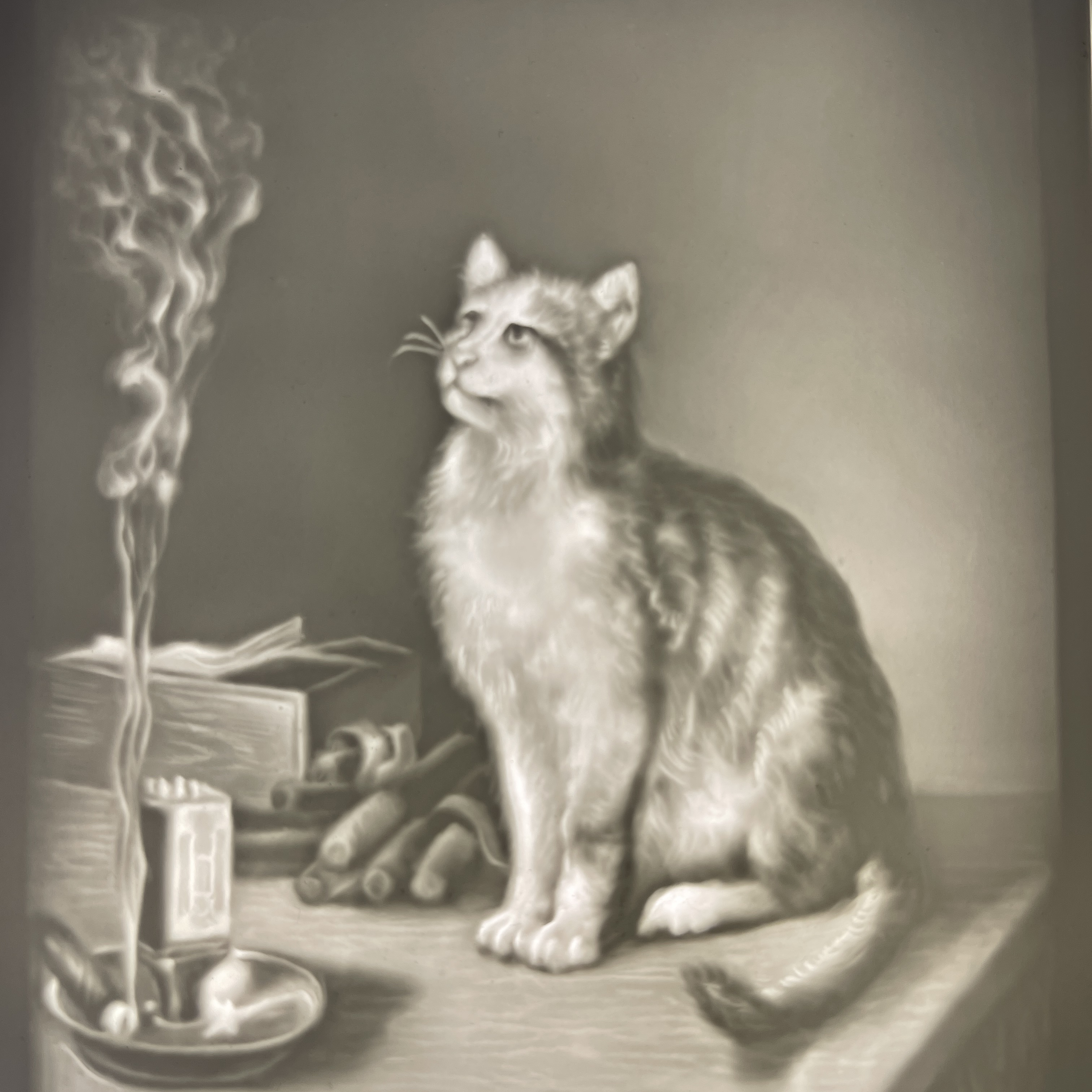 Lithophanieplatte "Die Katze und die qualmende Zigarre"