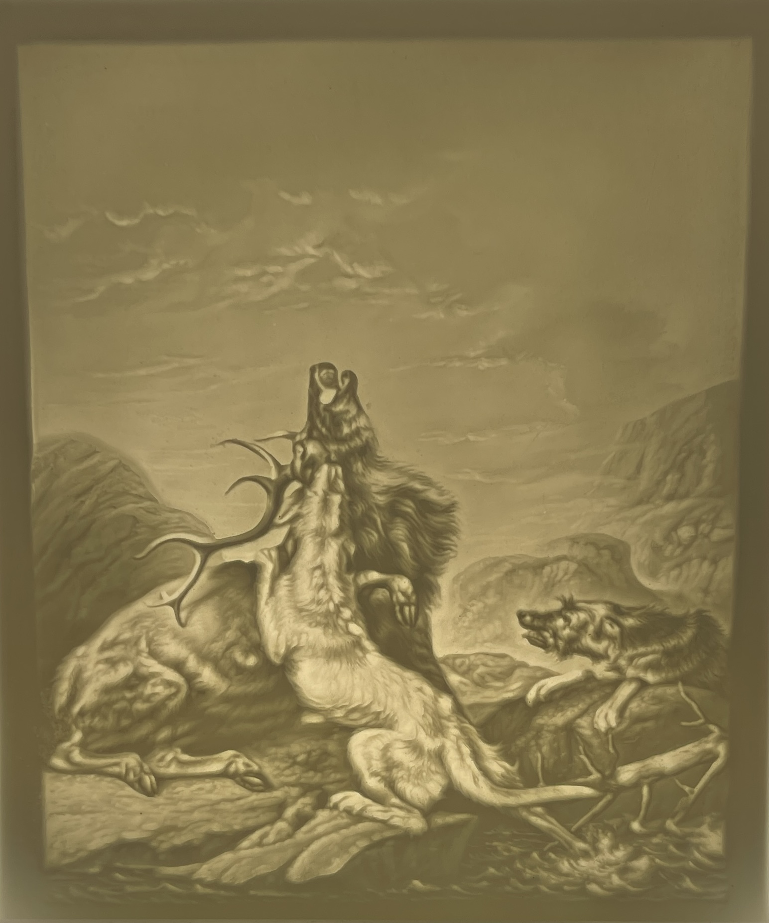 Lithophanieplatte- Wölfe erlegen Hirsch