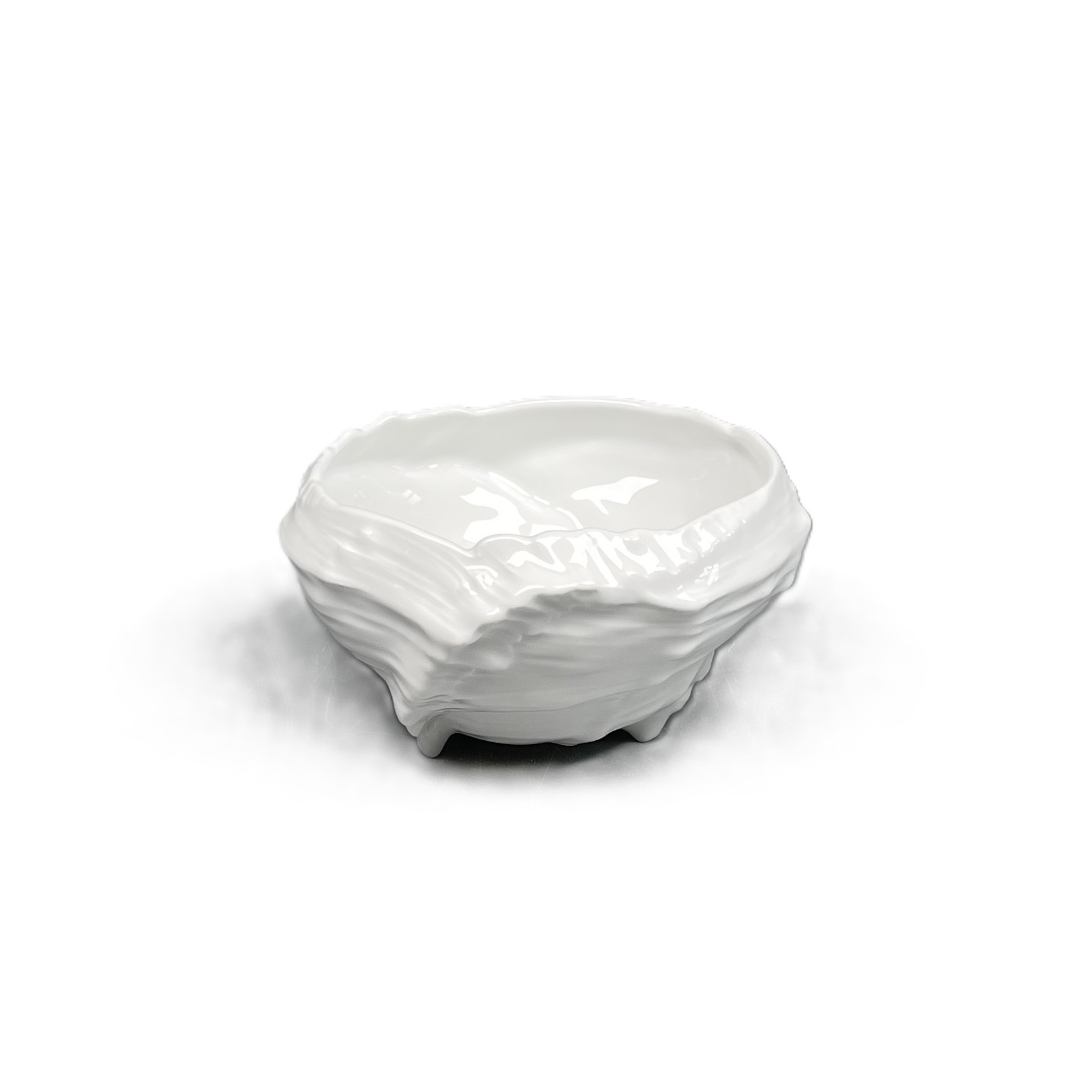 Muschelservice, Schale mit Füßchen, weiß glasiert