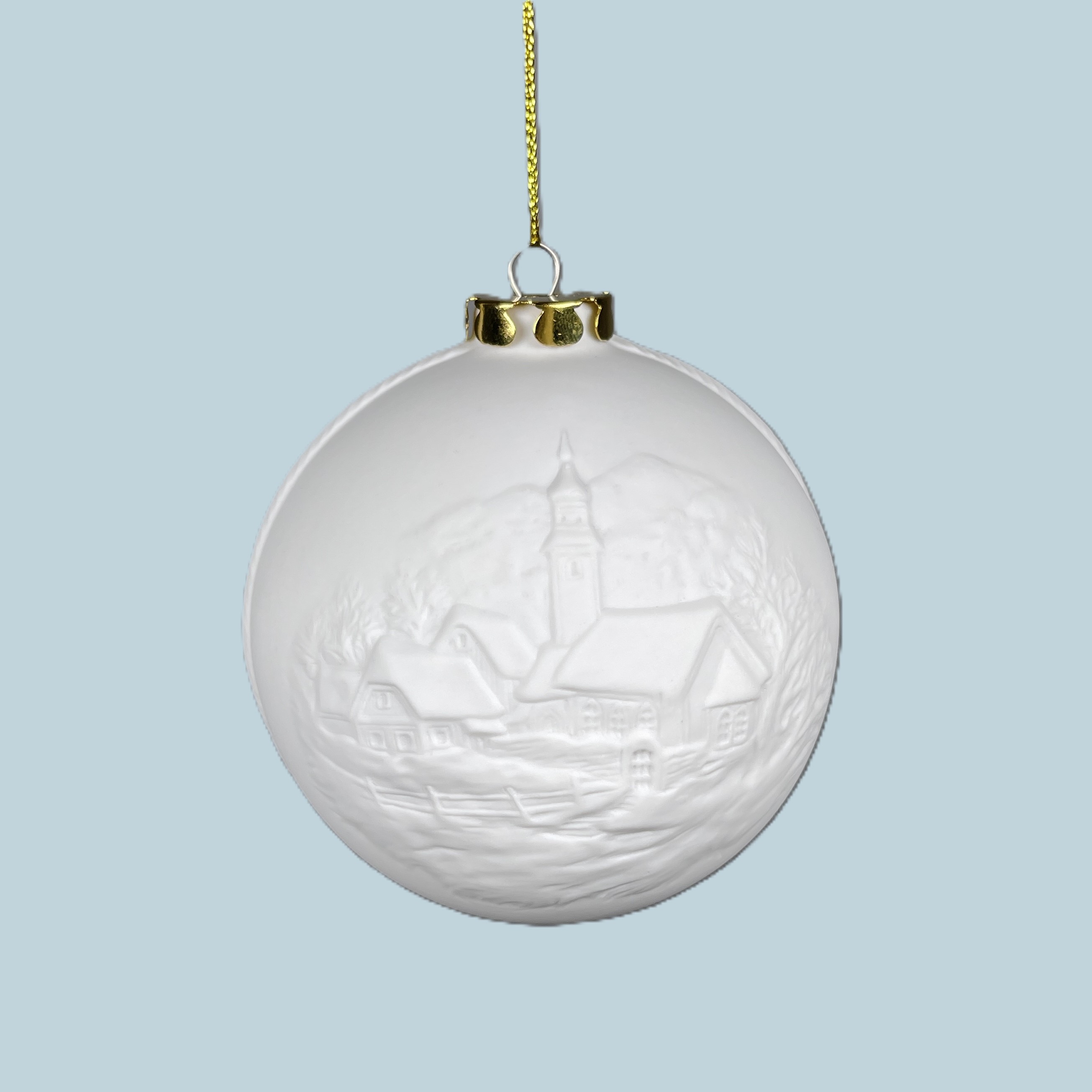 Weihnachtskugel aus feinstem Bisquitporzellan, Durchmesser 8 cm