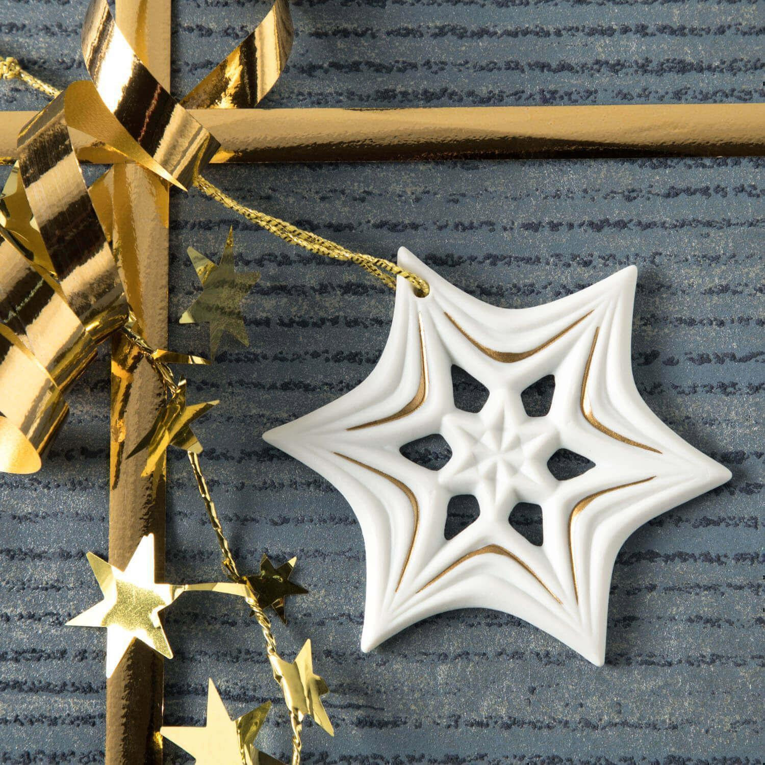 Stilvolle Dekoration zur Weihnachtszeit ist ein Muss. Unsere hochwertigen Porzellananhänger aus feinem Biskuitporzellan werden in aufwendiger Handarbeit in unserer Porzellanmanufaktur gefertigt. Verschönern Sie mit Gold bemalten oder undekorierten Porzellanschmuck in verschiedenen Ausführungen Ihren Weihnachtsbaum oder Adventskranz.