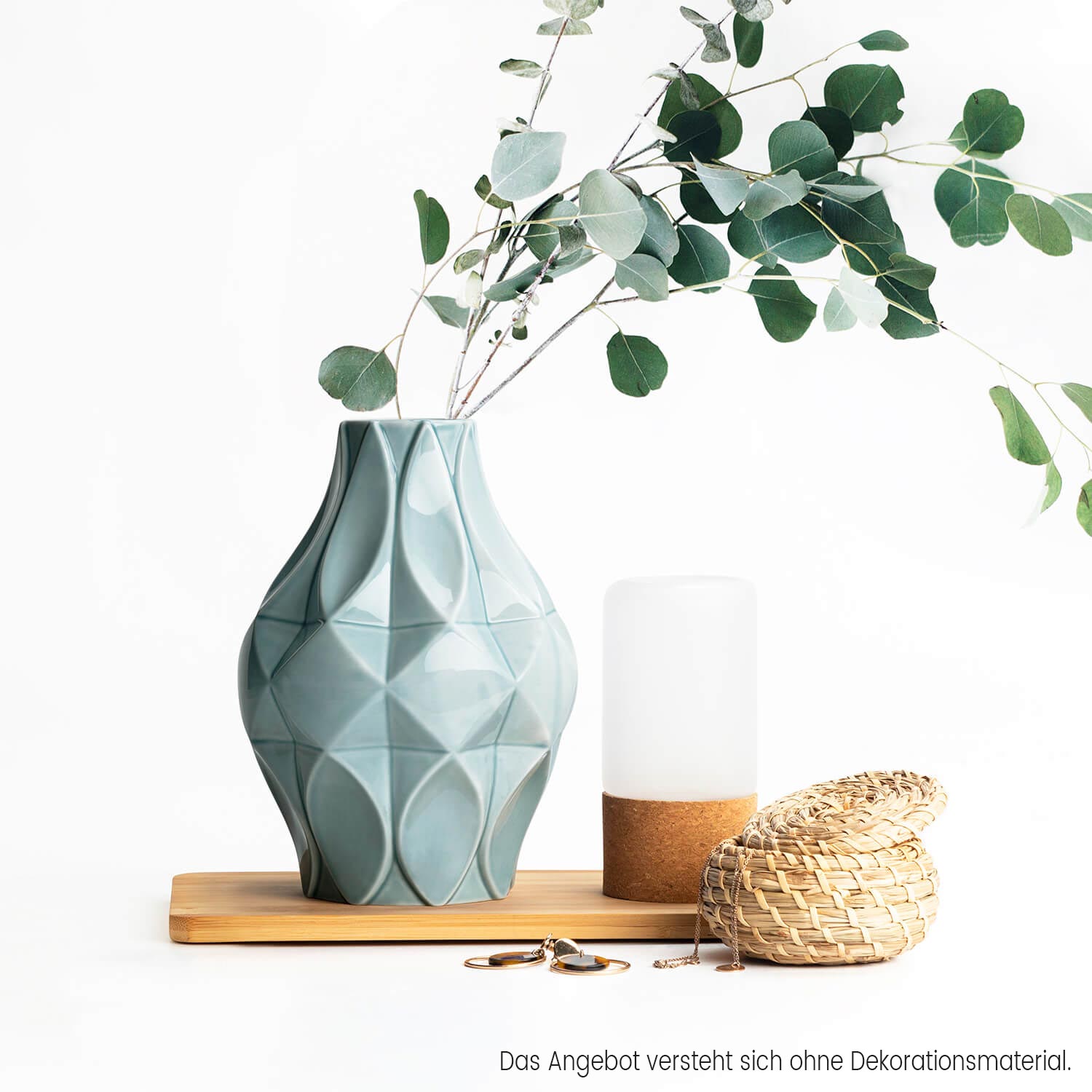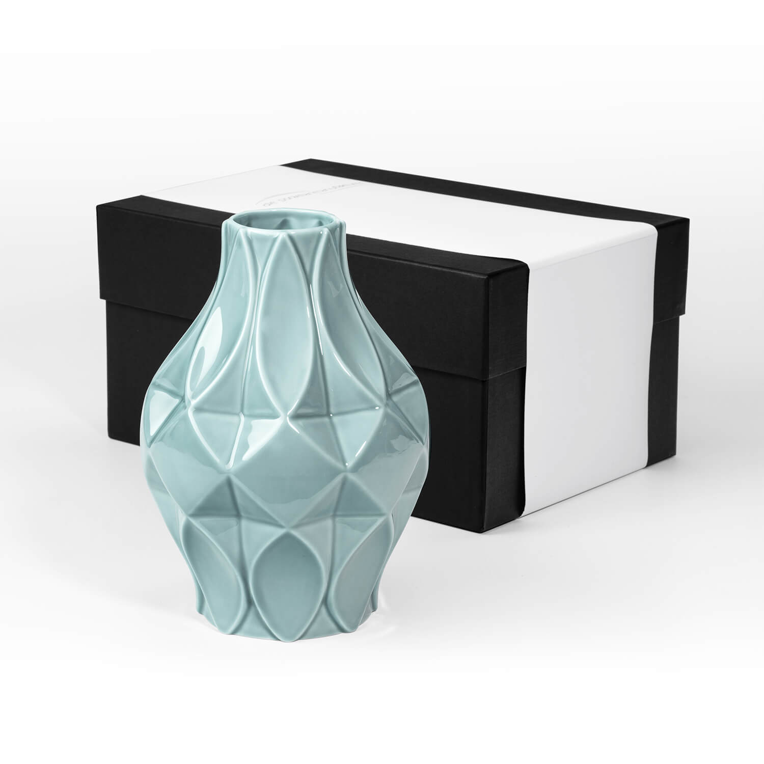 Elegant und dennoch sehr modern - das sind die fünf verschiedenen Porzellanvasen aus dieser Serie, welche es in zwei verschiedenen Größen - 11 cm und 21 cm - gibt. Durch das Relief und die spezielle Glasur entstehen einzigartige Farbnuancen - jedes Stück wird in aufweniger Handarbeit gefertigt und stellt ein Unikat aus unserer Thüringer Porzellanmanufaktur dar.